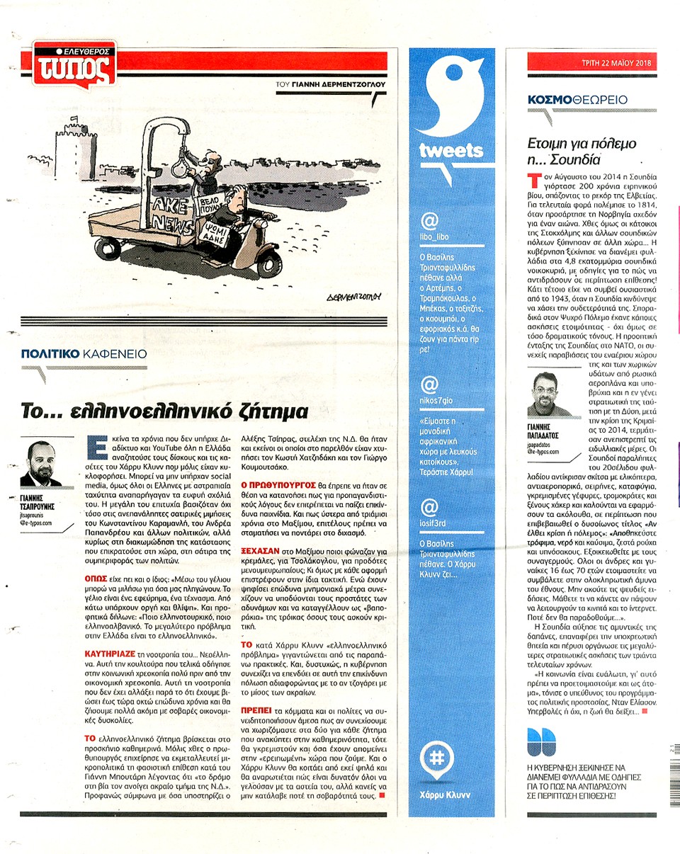 ΕΛΕΥΘΕΡΟΣ ΤΥΠΟΣ - 22 Μαΐου 2018