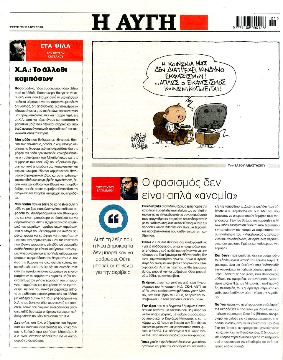 Η ΑΥΓΗ - 22 Μαΐου 2018