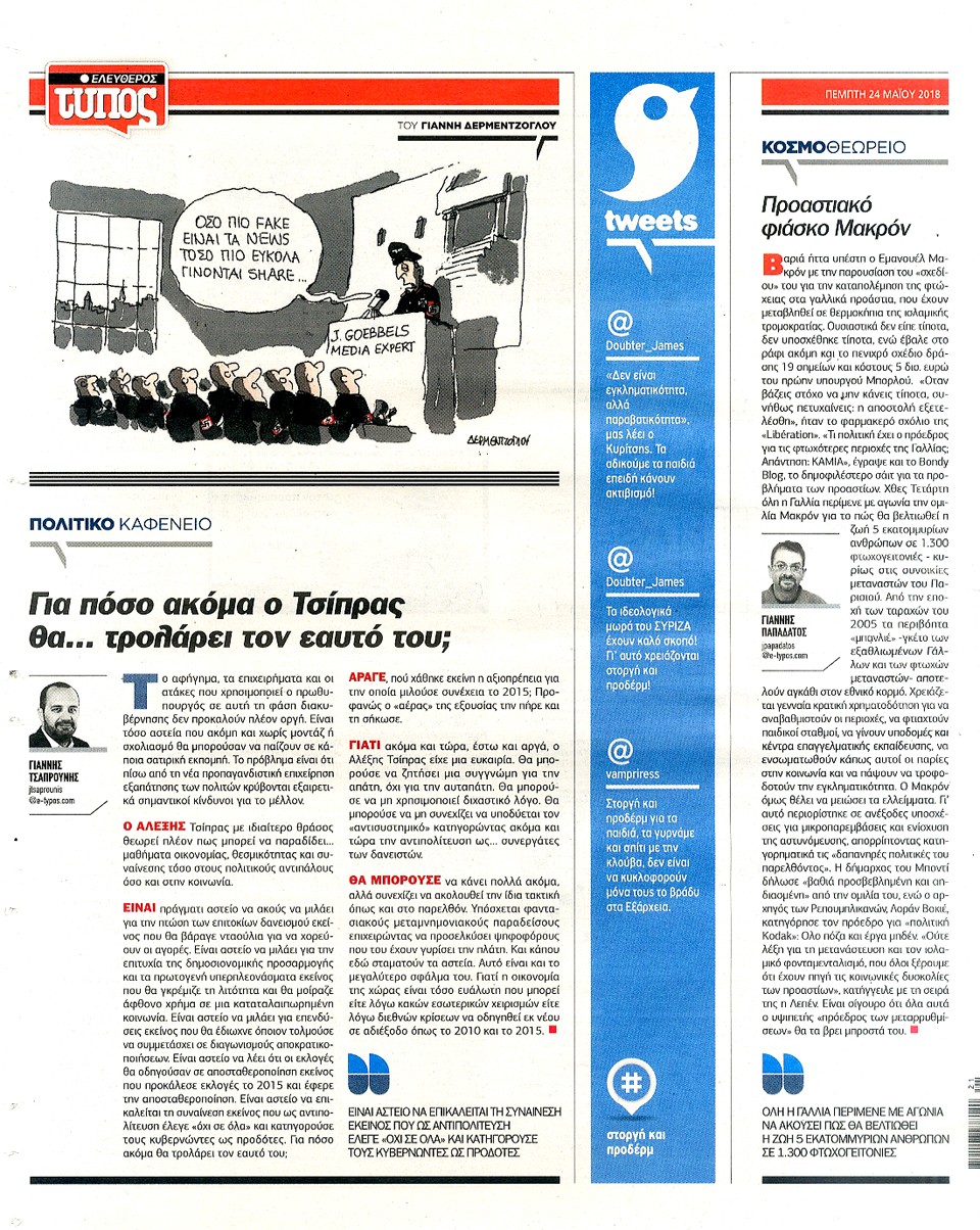 ΕΛΕΥΘΕΡΟΣ ΤΥΠΟΣ - 24 Μαΐου 2018