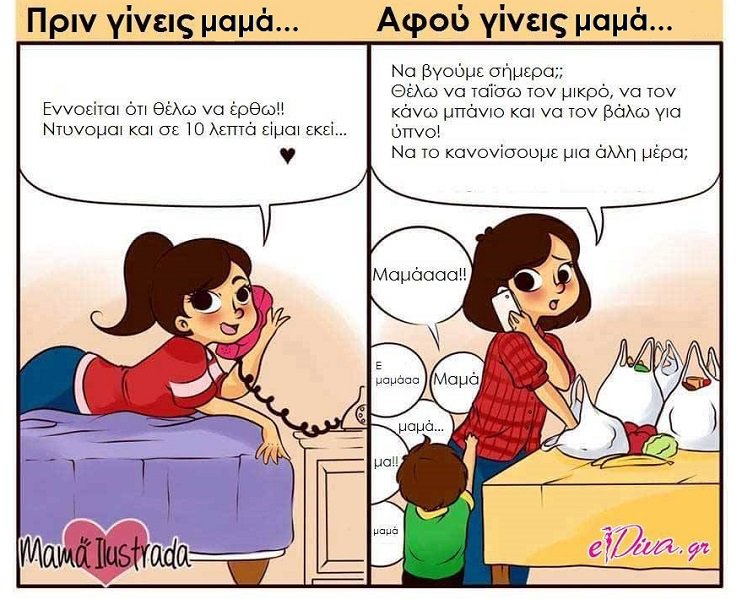 Εκεί μετά αλλάζουν τα πάντα για μια γυναίκα, από τις καθημερινές της συνήθειες και τον τρόπο που αντιμετωπίζει τα πράγματα, μέχρι και τον τρόπο με τον οποίο σκέφτεται. Καμία γυναίκα δεν είναι προγραμματισμένη για να γίνει μαμά, αλλά όταν έρχεται εκείνη η στιγμή, λίγο-πολύ όλες έχουν μια κοινή γραμμή.