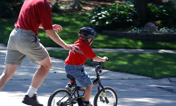 Σταθείτε δίπλα του: Αρχικά κρατήστε τη σέλα και το τιμόνι και προχωρήστε μαζί με το παιδί καθώς κάνει πετάλι. Βοηθήστε το να βρει την ισορροπία του και να μάθει να σταθεροποιείται πάνω στο ποδήλατο. Μην το αφήσετε χωρίς να το προειδοποιήσετε, αλλά πείτε του πότε θα το αφήσετε μόνο του για να μην αγχωθεί.