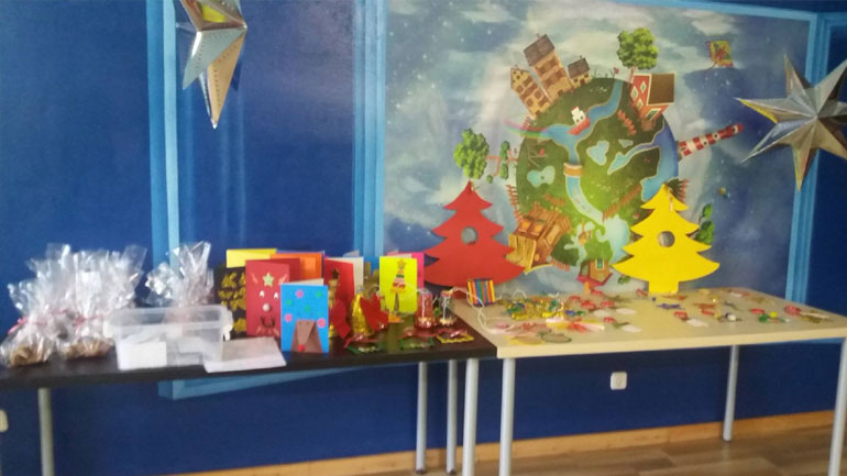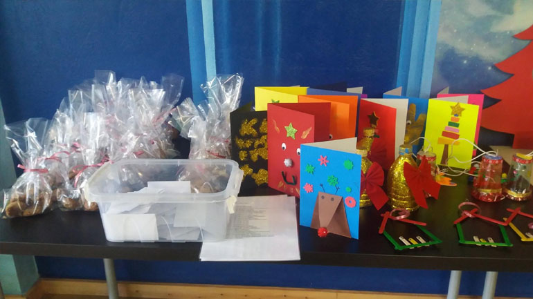 Μικροί και μεγάλοι είχαν την ευκαιρία να αγοράσουν χριστουγεννιάτικα στολίδια, φτιαγμένα από τα χέρια των παιδιών που παρακολουθούν τα προγράμματα Δημιουργικής Απασχόλησης του Κέντρου, καθώς και να κερδίσουν δώρα, συμμετέχοντας στη λαχειοφόρο αγορά.