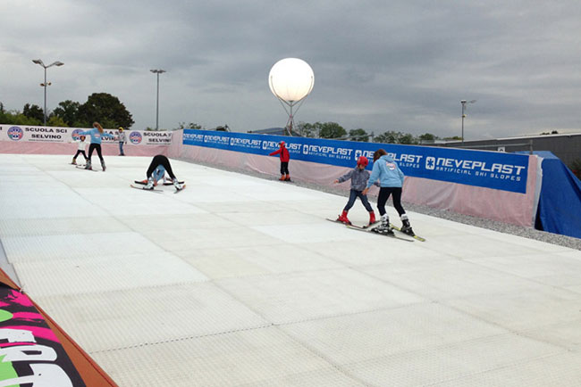 Κατασκευασμένη από το ασφαλέστερο και πιο λειτουργικό υλικό του κόσμου (της εταιρίας Neveplast), θα δώσει την ευκαιρία σε μικρούς και μεγάλους να γνωρίσουν τα χειμερινά σπορ και να κάνουντα πρώτα τους μαθήματασκι και snowboard, χωρίς να πάνε στο βουνό! Στην πίστα, μήκους 45 μέτρων και πλάτους 16 μέτρων, θα υπάρχει επαρκής εξοπλισμός -μπότες και πέδιλα- σε όλα τα μέτρα, καθώς και έμπειροι αθλητές και προπονητές που θα κάνουν μαθήματα σκι στα παιδιά.