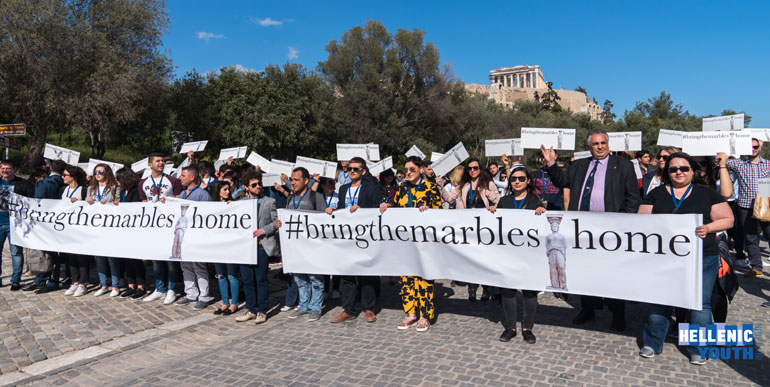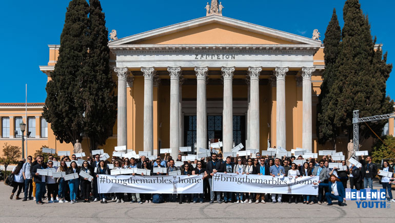 350 Έλληνες νεολαίοι από 20 χώρες ένωσαν τις φωνές τους την Κυριακή 1η Απριλίου στην Αθήνα, στέλνοντας ένα ηχηρό μήνυμα στον κόσμο: είναι ώρα τα Μάρμαρα του Παρθενώνα να επιστρέψουν στην πατρίδα τους.