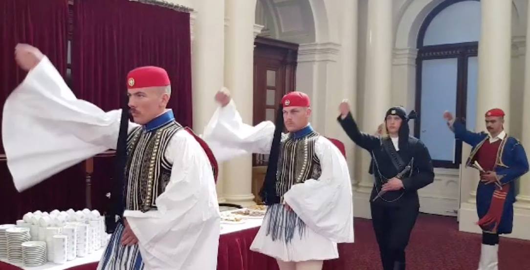 Επίσης, το μεσημέρι της Πέμπτης, η κυβέρνηση της Bικτώρια, με εντολή του Πολιτειακού πρωθυπουργού κ. Daniel Andrews, προσκάλεσε τιμητικά το άγημα των Ελλήνων Ευζώνων να αναλάβει τη φύλαξη του Κοινοβουλίου, εκδήλωση που εντυπωσίασε τους εκατοντάδες επισκέπτες απ΄όλο τον κόσμο, αλλά ταυτόχρονα, συγκίνησε βαθύτατα τους συγκεντρωμένους ομογενείς, οι οποίοι έψαλαν τον Εθνικό Ύμνο.