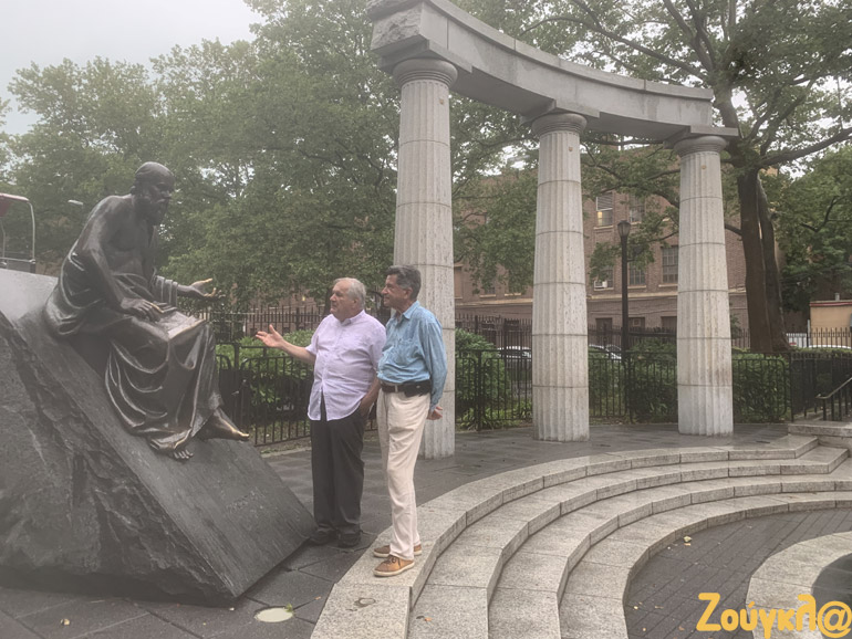 Ξεκινάμε το οδοιπορικό μας από την πλατεία της… Αθήνας! Η «Athens Square» δημιουργήθηκε τη δεκαετία του 1990, με τις πρωτοβουλίες ομογενών, αλλά και τη στήριξη της ελληνικής Πολιτείας, Πρόκειται για ένα όμορφο πάρκο, στην καρδιά της Αστόρια, με αρχαιοελληνικούς κίονες, αγάλματα και στο δάπεδο το Αστέρι της Βεργίνας. Συναντήσαμε τους δημιουργούς της, τον Γιώργο Δελή και τον Γιώργο Στατιάδη, οι οποίοι μας ξενάγησαν στην πλατεία και μας αφηγήθηκαν λεπτομέρειες για το πώς η Ελλάδα έχει τη δική της γωνιά στη Νέα Υόρκη!