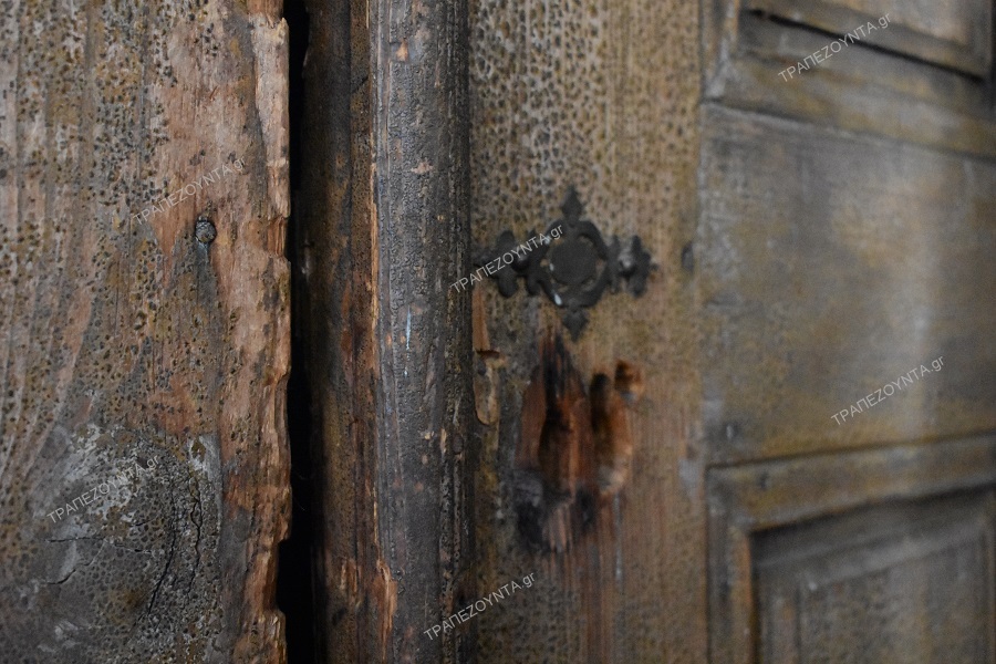 Αυτό όμως που μου τράβηξε την εντύπωση περισσότερο, με συγκλόνισε, και με έκανε να αισθανθώ πως χάνω τη γη κάτω από τα πόδια μου, ήταν η εικόνα στο εσωτερικό μιας ντουλάπας· γεμάτη τρύπες, σκαλισμένη. Στο παραμικρό δεν είχε πάει το μυαλό μου ότι θα ήταν αυτό που θα μου έλεγαν λίγα δευτερόλεπτα αργότερα οι σπιτονυκοκυραίοι, ότι έψαχναν για λίρες! Θεώρησα ότι ήταν φυσική φθορά.