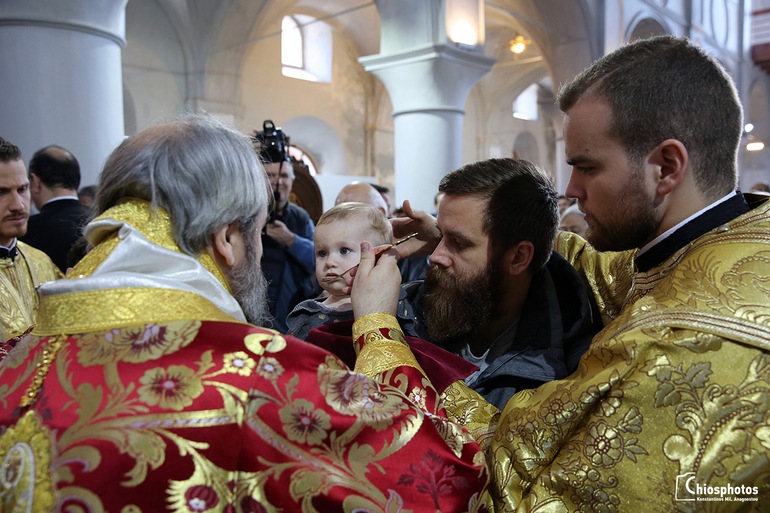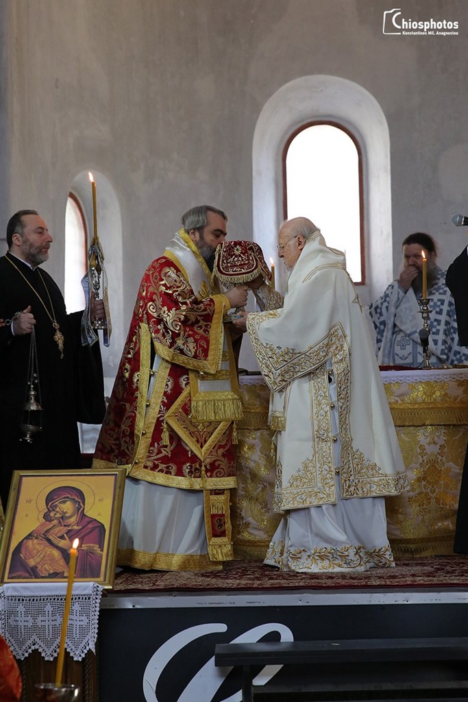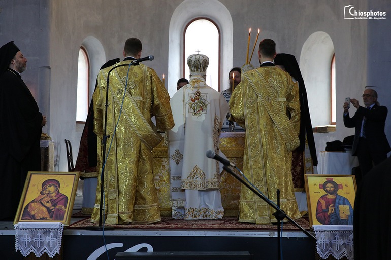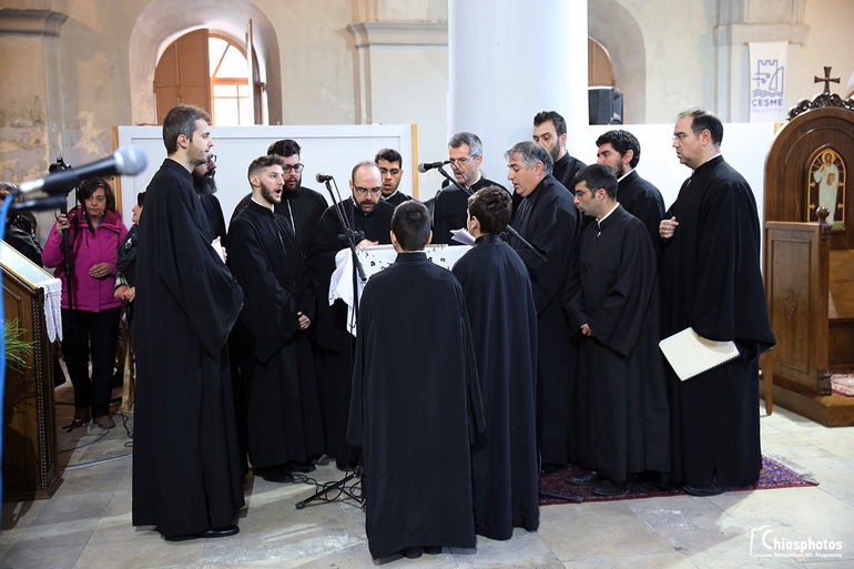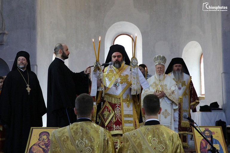 Στην Θεία Λειτουργία παρευρέθησαν η ελληνίδα Πρόξενος στη Σμύρνη κ. Αργυρώ Παπούλια καθώς και εκατοντάδες πιστοί από τη Χίο, τη Θεσσαλονίκη και άλλα μέρη της Ελλάδας. Στο τέλος της Θείας Λειοτουργίας ο Μητροπολίτης Σμύρνης κ. Βαρθολομαίος προσέφερε στον Παναγιότατο ένα αντίγραφο της εικόνας της Παναγίας της Νεαμονήτισσας της Χίου.