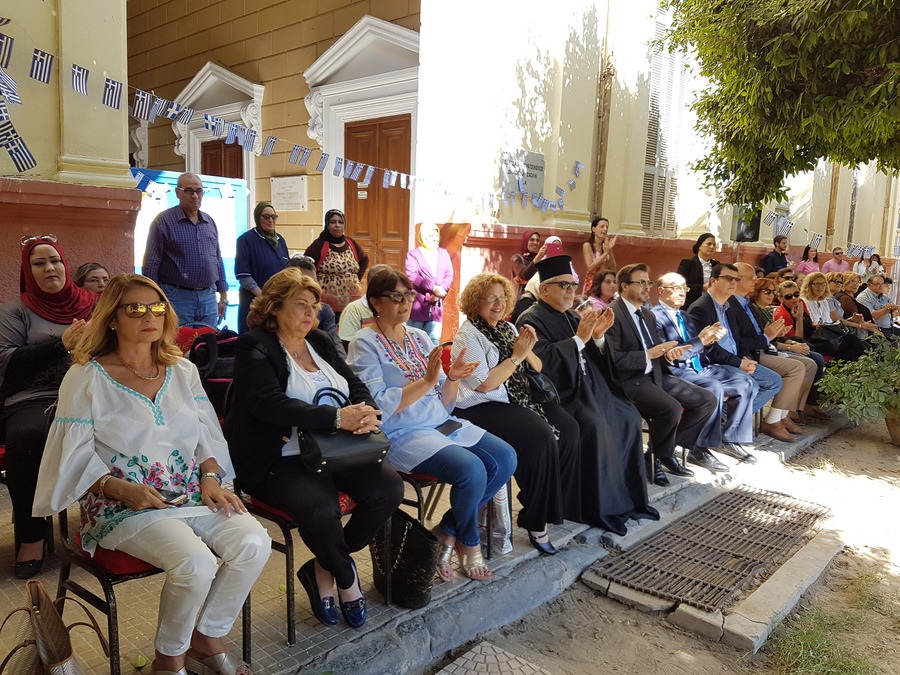 Οι εορτές ήταν εντυπωσιακές και ακόμη περισσότερο στο Ελληνικό Τετράγωνο του Σάτμπι στην Αλεξάνδρεια, εκεί όπου ανάμεσα από τα ιστορικά κτίρια του Αιγυπτιώτη Ελληνισμού, τα παιδιά σήκωσαν την ελληνική σημαία, παρέλασαν και τέλος χόρεψαν στους παραδοσιακούς ελληνικούς ρυθμούς, φέρνοντας πιο κοντά την Ελλάδα και ξεσηκώνοντας τα χειροκροτήματα όλων και αποσπώντας και τα συγχαρητήρια του προέδρου της Ελληνικής Κοινότητας Αλεξανδρείας κ. Εδμόνδου Κασιμάτη, που παρακολουθούσε την εκδήλωση από κοινού με τον γενικό πρόξενο της Ελλάδας στην Αλεξάνδρεια κ. Εμμανουήλ Κακαβελάκη, τον αντιπρόεδρο της Κοινότητας κ. Γιάννη Σιόκα, τον γενικό γραμματέα κα Μιχάλη Καρυδιά, τον οικονομικό επόπτη κ. Πάρη Πεφάνη Μακρή, τον π. Σπυρίδωνα Κλαδάκη εκ μέρους του Πατριαρχείου Αλεξανδρείας, την πρόεδρο του Συλλόγου Ελλήνων Επιστημόνων Αλεξανδρείας «Πτολεμαίος Α΄» κα Λιλίκα Θλιβίτου, την δ/ντρια του Ελληνικού Ιδρύματος Πολιτισμού παραρτήματος Αλεξανδρείας κα Σταυρούλα Σπανούδη και άλλους επισήμους.