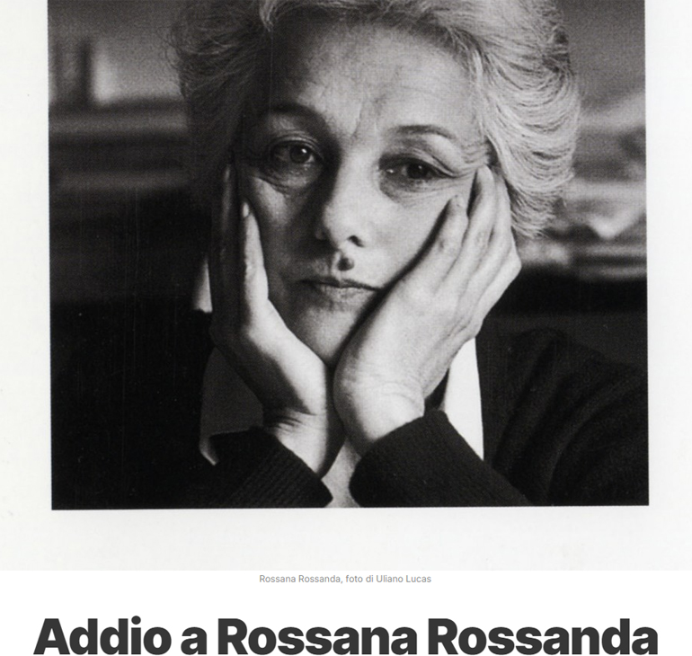 Απεβίωσε πλήρης ημερών, σκέψης, δράσης, αντιπαραθέσεων, εσωκομματικών και ενδοπαραταξιακών καβγάδων, η μεγάλη κυρία της ιταλικής κομμουνιστικής Αριστεράς, η Ροσάνα Ροσάντα. Γεννήθηκε στην Πούλα της σημερινής Κροατίας το 1924. Έγινε κομμουνίστρια το 1943. Σπούδασε Ιστορία της Τέχνης και Φιλοσοφία.