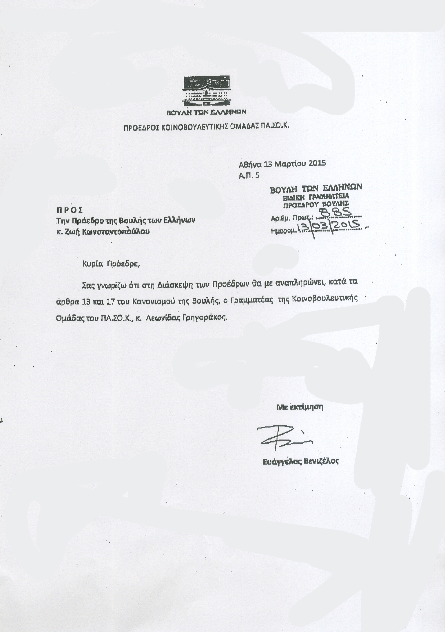 Μέχρι να δώσει την επιστολή ο Λεωνίδας Γρηγοράκος, με την οποία ο πρόεδρος του ΠΑΣΟΚ, Ευάγγελος Βενιζέλος, τον εξουσιοδοτούσε… έγιναν μαλλιά κουβάρια!