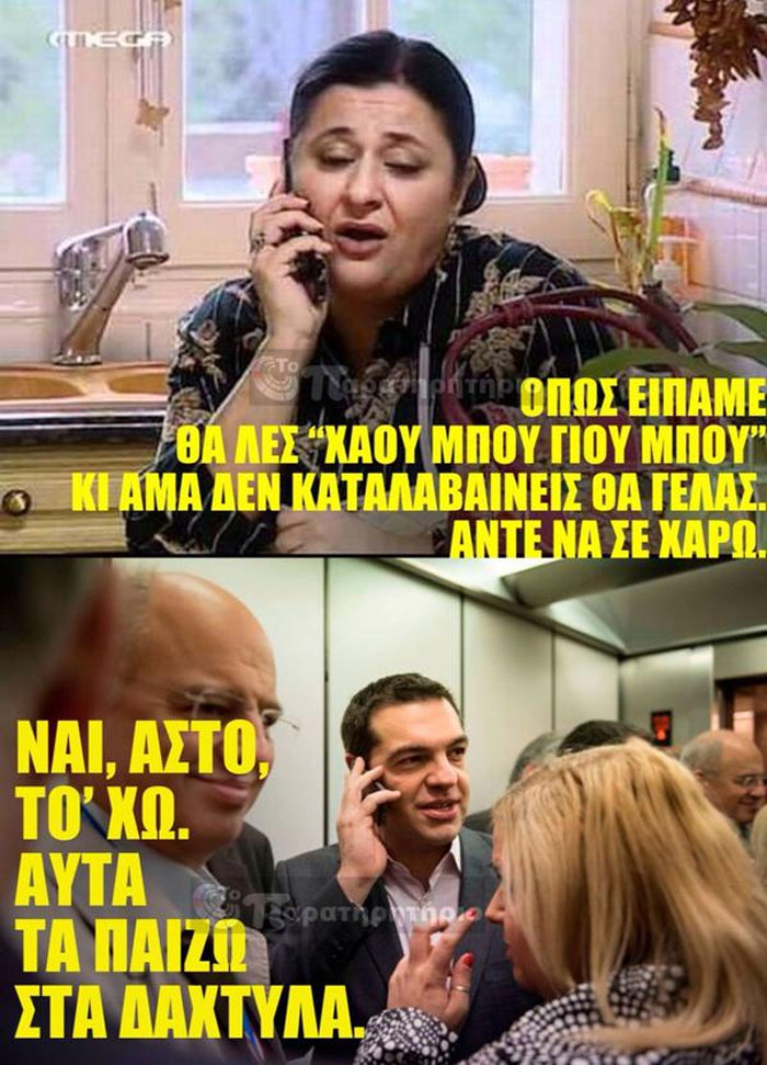 «- Mr Tsipras one last question. – No, please you. I don’t have weather for losing»