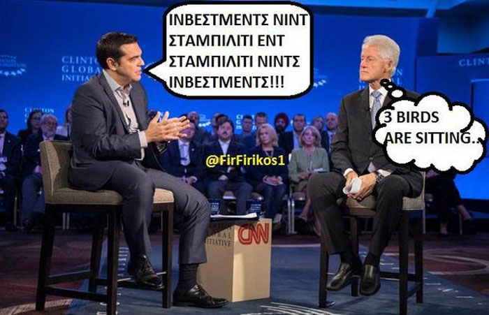 Την αμήχανη στιγμή που ο πρωθυπουργός Αλέξης Τσίπρας τα βρήκε «μπαστούνια» με την ερώτηση του πρώην προέδρου των ΗΠΑ, Μπιλ Κλίντον δεν άφησαν ανεκμετάλλευτη και ασχολίαστη οι χρήστες του των μέσων κοινωνικής δικτύωσης.