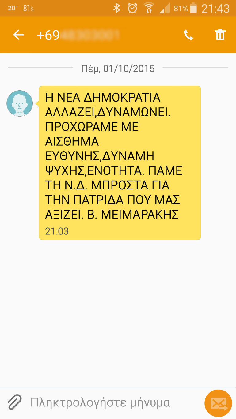 Ήδη τα κινητά τηλέφωνα μελών της γαλάζιας παράταξης δέχθηκαν τα πρώτα μηνύματα που τα καλούν να… μονιμοποιήσουν τον μεταβατικό πρόεδρο του κόμματος.