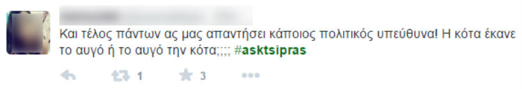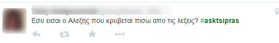 Μάλιστα το #asktsipras τις τελευταίες ώρες έχει αναδειχθεί ως το δημοφιλέστερο hashtag στην Ελλάδα και τρίτο παγκοσμίως.