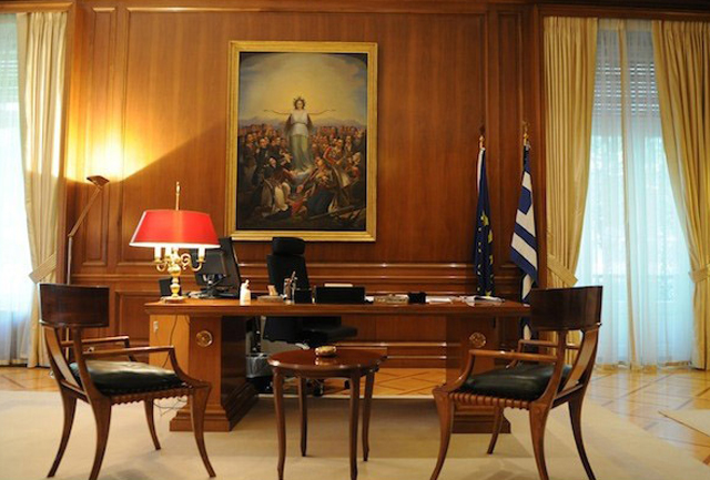 Επί των ημερών του στο Μαξίμου, ο Γιώργος Παπανδρέου δεν άφηνε ούτε λεπτό τα απαλά πλήκτρα του υπολογιστή της Apple, ενώ διακόσμησε το γραφείο με τον πίνακα «Ατέρμονο πεδίο – Δελφοί» του Λευκαδίτη Θεόδωρου Στάμου… Ο Αντώνης Σαμαράς, όμως, επανέφερε στη θέση του τον πίνακα «Η Ελλάς ευγνωμονούσα» και αρκέστηκε σε ένα απλό desktop…
