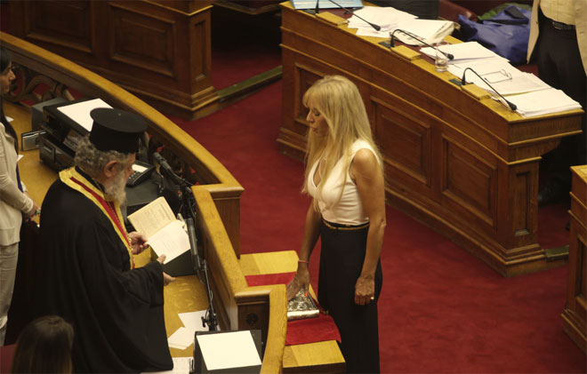 Ο εικονολήπτης της Βουλής είχε εστιάσει το φακό του πάνω στον ιερέα κατά την διάρκεια της ορκωμοσίας της νέας βουλευτίνας Χίου Μαρίνας Σταυρινίου-Σόδη και δεν έλεγε να ξεκολλήσει το πλάνο του από τον άγιο πατέρα. Κάποια στιγμή ζούμαρε στο πρόσωπο της ξανθιάς βουλευτίνας αφήνοντας την εικόνα να μιλήσει από μόνη της.