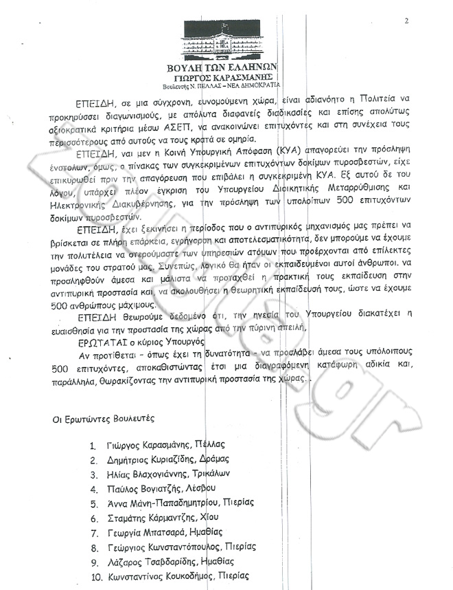 «…Υπογραμμίζεται ακόμη, ότι τίθεται ζήτημα κοινωνικό και ηθικό ,όταν σε μια σύγχρονη, ευνομούμενη χώρα,η Πολιτεία προκηρύσσει διαγωνισμούς, με απόλυτα διαφανείς διαδικασίες και επίσης απολύτως αξιοκρατικά κριτήρια μέσω ΑΣΕΠ, ανακοινώνει επιτυχόντες και στη συνέχεια τους περισσότερους από αυτούς τους κρατά σε ομηρία» αναφέρουν στην ερώτησή τους οι Βουλευτές.