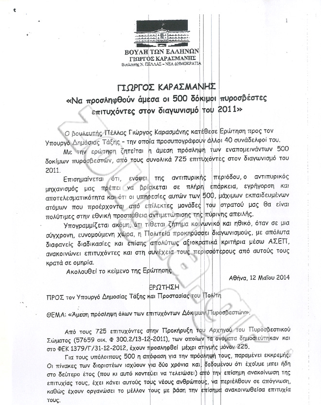 «Δεν μπορείτε,κύριοι της κυβέρνησης,να κρατάτε σε ομηρία,ανθρώπους που πέτυχαν στις εξετάσεις» είναι το μήνυμα που στέλνουν εμμέσως πλην σαφώς σαράντα Βουλευτές του ΠΑΣΟΚ και της Νέας Δημοκρατίας,με επικεφαλής τον Βουλευτή Πέλλας της «γαλάζιας» παράταξης Γιώργο Καρασμάνη.