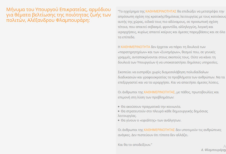 Σε μια πρωτοβουλία που αποσκοπεί στην αμεσότερη επικοινωνία του πολίτη με την κυβέρνηση με στόχο την αποτελεσματικότερη διαχείριση και αντιμετώπιση ζητημάτων της καθημερινότητας, προχώρησε ο υπουργός Επικρατείας Αλέκος Φλαμπουράρης.