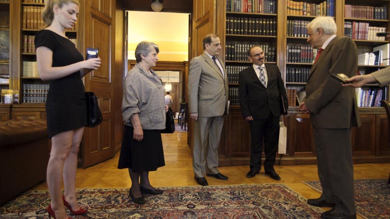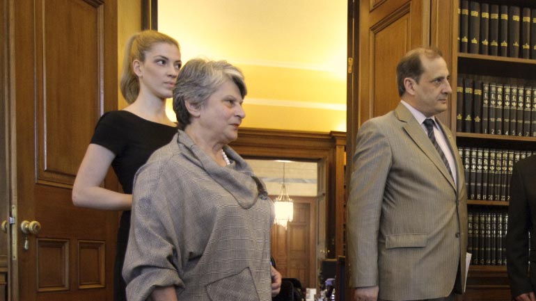 Κάμερες και φωτογράφοι της εκεί για να καλύψουν το γεγονός, τα φλας όμως «άστραψαν» κανονικά μόλι έγινε αντιληπτή η παρουσία μίας νεαρής γυναίκας που μετείχε στην αντιπροσωπεία.