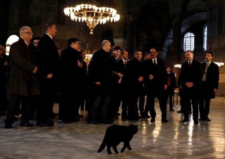Κατά τη διάρκεια της ξενάγησης του Έλληνα πρωθυπουργού, την εμφάνισή της έκανε μια μαύρη γάτα, η οποία σύμφωνα με τον τουρκικό Τύπο ζει στην Αγια-Σοφιά.