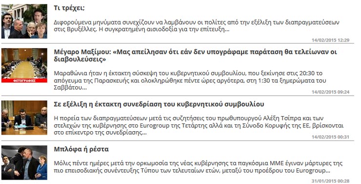 »Η κριτική απέναντι στο αίτημα της νέας κυβέρνησης Αριστεράς-Δεξιάς για παράταση της οικονομικής βοήθειας χωρίς τις απαιτούμενες καθαρές δεσμεύσεις ήταν μεγάλη, όχι μόνο από τον Γερμανό υπουργό Οικονομικών Βόλφγκανγκ Σόιμπλε. Παρά το γεγονός ότι μόλις πριν ο Έλληνας υπουργός Οικονομικών Βαρουφάκης είχε επαινέσει τον εαυτό του για διάθεση συμβιβασμού. “Η Αθήνα διένυσε δέκα μίλια αντί για ένα” δήλωσε. Το Eurogroup διαπραγματεύτηκε εξαιρετικά σκληρά. Αφού το Eurogroup είχε παρουσιάσει τη δική του εκδοχή απαιτήσεων για μεταρρυθμίσεις, ο Γερούν Ντάισελμπλουμ τηλεφώνησε στον Αλέξη Τσίπρα και είπε: “Ή αυτό ή τελειώσαμε”».