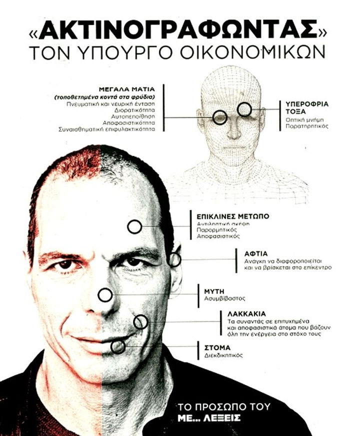 Στο πλαίσιο αυτό, ο γνωστός φυσιογνωμιστής και σύμβουλος επικοινωνίας Evan Fotis Γεωργουλάκης επιχειρεί να «ακτινογραφήσει» το πρόσωπο του Γιάνη Βαρουφάκη.