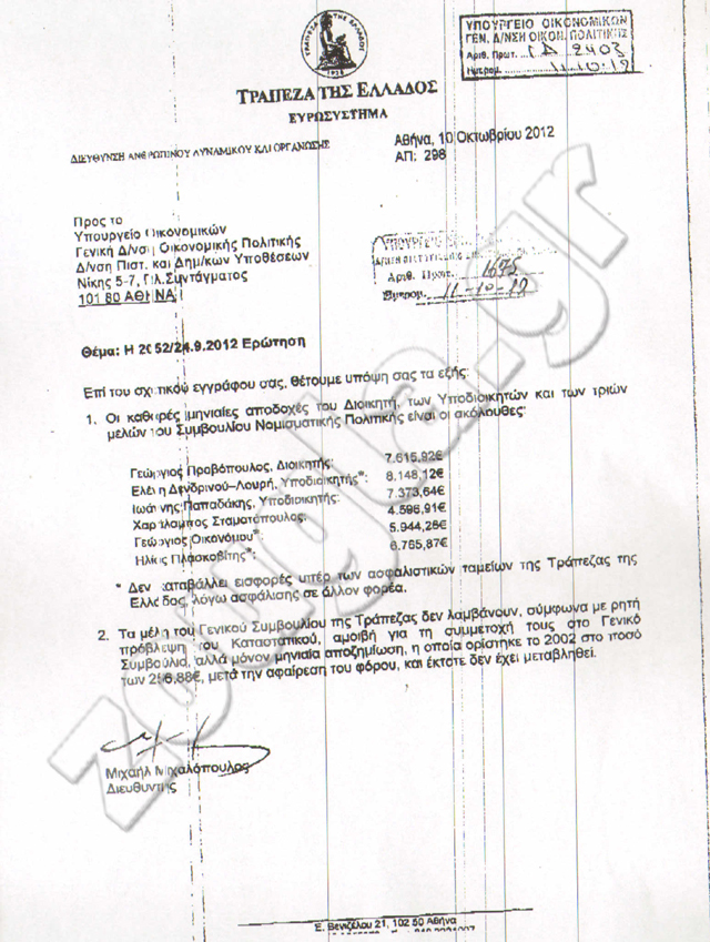 Να φανταστείτε ότι τον περνάει… οικονομικά μέχρι και η υποδιοικητής της Τράπεζας Ελένης Δενδρινού – Λουρή, η οποία εισπράττει 8.148,12 ευρώ.