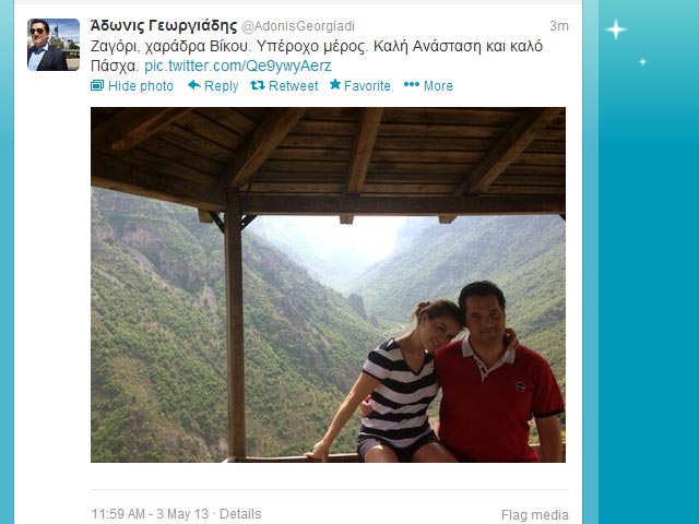 Όπως ενημερώνει μέσω twitter, είναι στο Ζαγόρι και, φυσικά, δεν παραλείπει και το φωτογραφικό ντοκουμέντο.