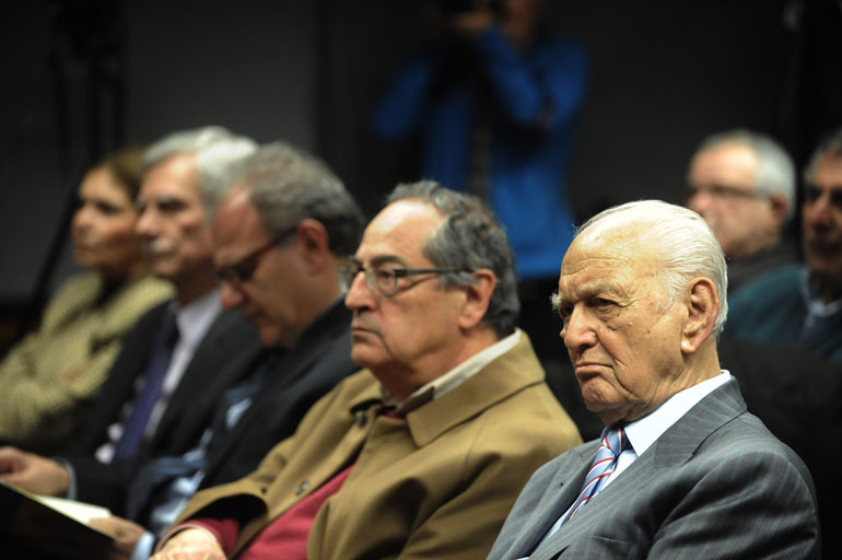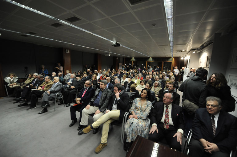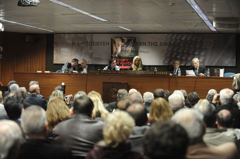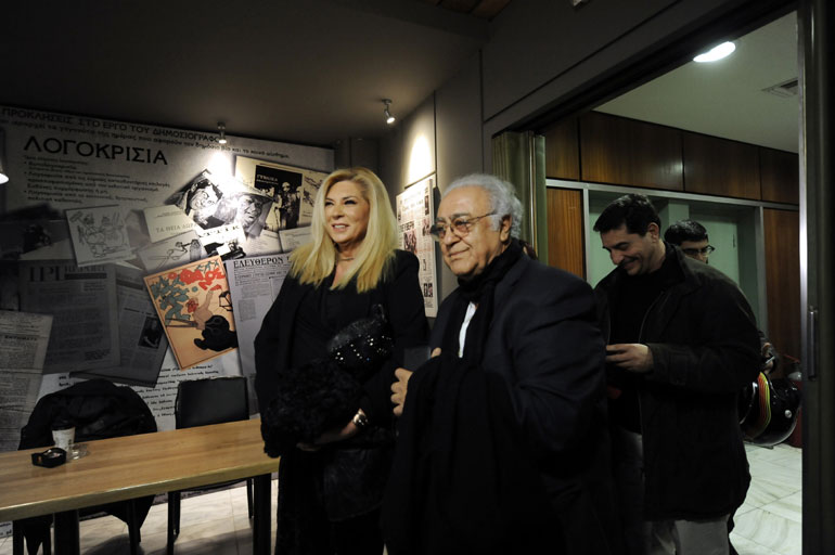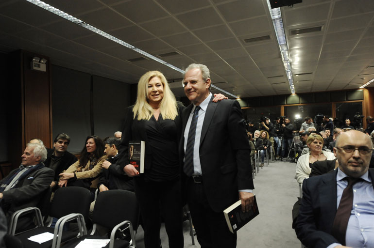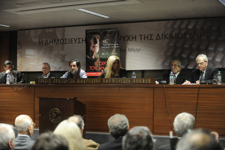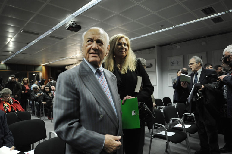 Στην αίθουσα της ΕΣΗΕΑ βρέθηκε ο εκδότης και στενός φίλος του Ανδρέα, Ανδρέας Λιβάνης, καθώς και ο επιχειρηματίας, Πρόδρομος Εμφιετζόγλου,που είχε θερμό εναγκαλισμό με τη Δήμητρα Παπανδρέου.