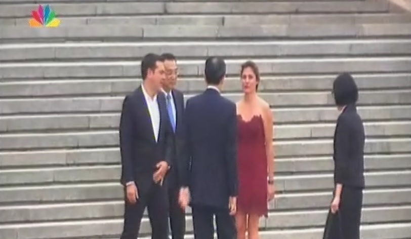 Μια… τολμηρή εμφάνιση έκανε η σύζυγος του Αλέξη Τσίπρα Μπέτυ Μπαζιάνα, η οποία συνόδευσε τον πρωθυπουργό κατά την τελετή υποδοχής του στην ιστορική πλατεία Τιέν Αν Μεν του Πεκίνου.