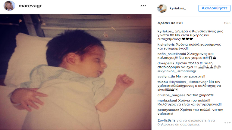 Η σύζυγος του Προέδρου της ΝΔ, ανέβασε τη φωτογραφία στον προσωπικό της λογαριασμό στο instagram, με τον ευτυχισμένο πατέρα να σχολιάζει: «Σήμερα ο Κωνσταντίνος μας γίνεται 18! Να είναι τυχερός και ευτυχισμένος!