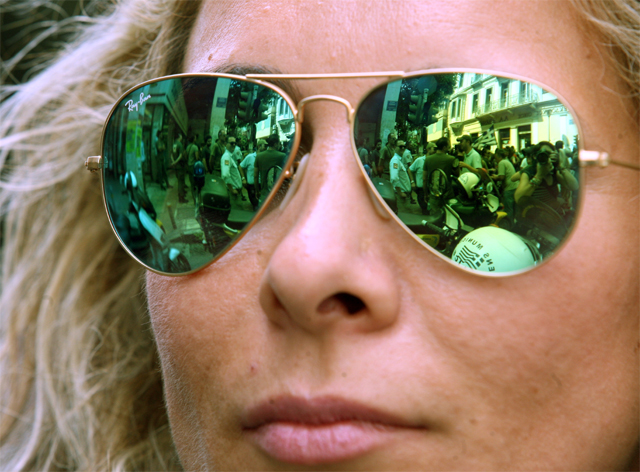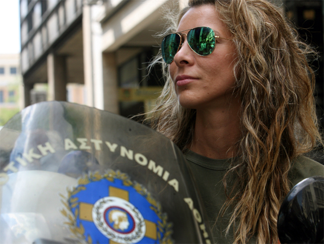 Δύο αστυνομικίνες, η μία εκ των οποίων φορώντας γυαλιά aviator με καθρέφτη, μαγνήτισαν το ενδιαφέρον των φωτορεπόρτερ.