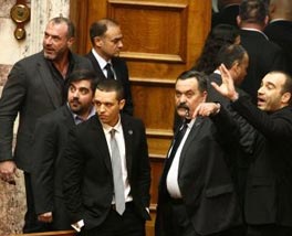 Η εικόνα αυτή προκάλεσε την αντίδραση του πρώην προέδρου της Βουλής Απόστολου Κακλαμάνη που δήλωσε χαρακτηριστικά: «Όπως έγραφε ο Θουκυδίδης, οι αρχαίοι Αθηναίοι πανηγύριζαν την ώρα που γκρέμιζαν τα τείχη της πόλης, αφήνοντάς την ανοχύρωτη. Εύχομαι να διαψευστώ».