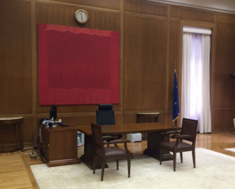 Σημειώνεται ότι ο συγκεκριμένος πίνακας κοσμούσε και το προηγούμενο γραφείο του Αλέξη Τσίπρα.