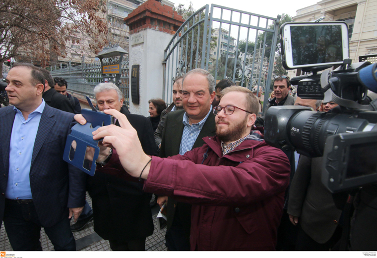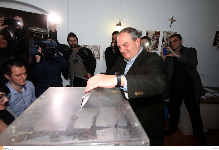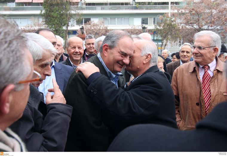 Καλή διάθεση, χαμόγελα και ένθερμοι εναγκαλισμοί συνέθεταν το σκηνικό στο εκλογικό κέντρο της Θεσσαλονίκης, όπου μετέβη το πρωί ο πρώην πρωθυπουργός Κωνσταντίνος Καραμανλής προκειμένου να ψηφίσει.