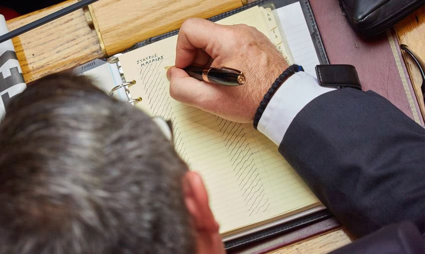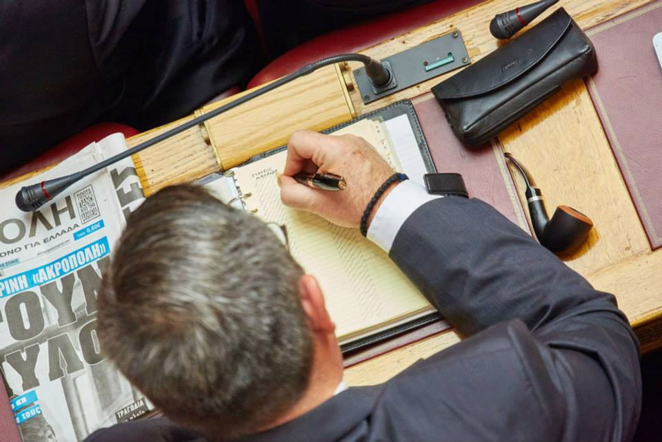 Ο προφυλακισμένος «υπαρχηγός» της Χρυσής Αυγής, Χρήστος Παππάς, κρατούσε το σκορ της τρίτης ψηφοφορίας για ΠτΔ σε δικό του τετράδιο, περνώντας έτσι ευχάριστα τον χρόνο...