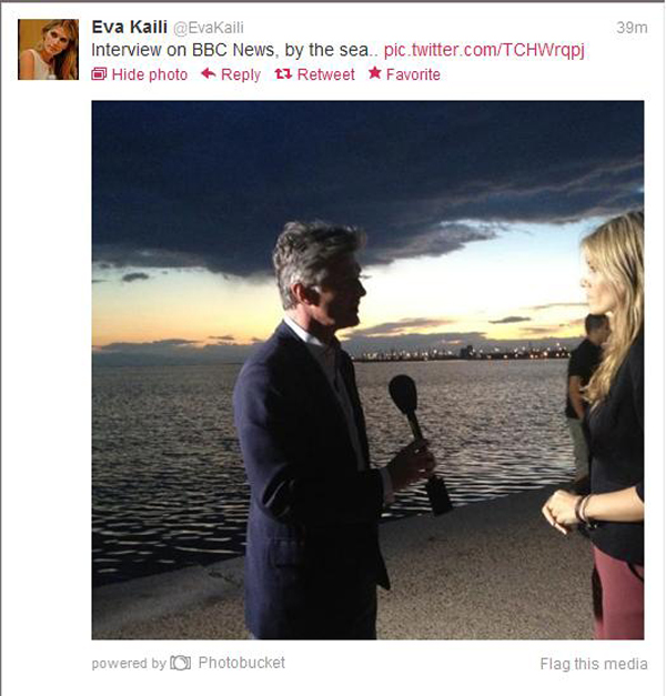 «Ιnterview on BBC News, by the sea…» έγραψε η Θεσσαλονικιά στη σελίδα της στο twitter, ενημερώνοντας τους ψηφοφόρους της.