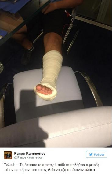 Τελικά ο γιος του Πάνου Καμμένου έσπασε το αριστερό του πόδι του στο σχολείο και ο πρόεδρος των Ανεξάρτητων Ελλήνων σχολίασε το περιστατικό με χιούμορ.
