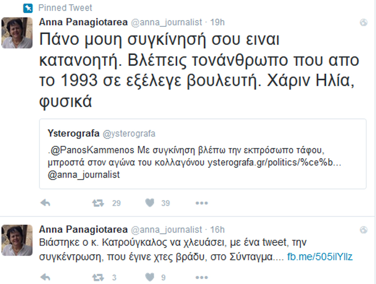 Λίγες ώρες μετά τη συγκέντρωση πολιτών με το σύνθημα «Παραιτηθείτε» ξέσπασε νέος γύρος αντιπαραθέσεων αυτή τη φορά μεταξύ του Πάνου Καμμένου και της Άννας Παναγιωταρέα.
