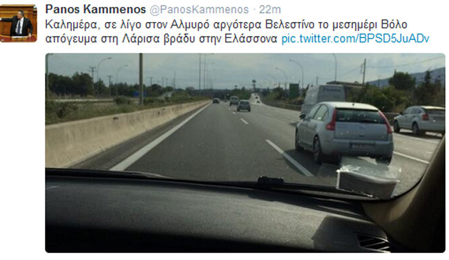 Έτσι, μετά τα «τιτιβίσματα» από τα διόδια των Μαλγάρων και την Κόνιτσα, σήμερα, μέσω διαδικτύου, μας ενημέρωσε για την περιοδεία του στη Θεσσαλία: