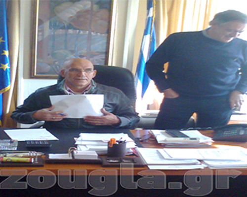 Στη θέση του υφυπουργού κ. Κουκουλόπουλου, στο γραφείο του στο υπουργείο, κάθεται αναπαυτικά ένας συνδικαλιστής των εργαζομένων στην Τοπική Αυτοδιοίκηση. Προηγουμένως μία ομάδα εργαζομένων, καμιά πενηνταριά άτομα, είχε καταλάβει το γραφείο του υπουργού.
