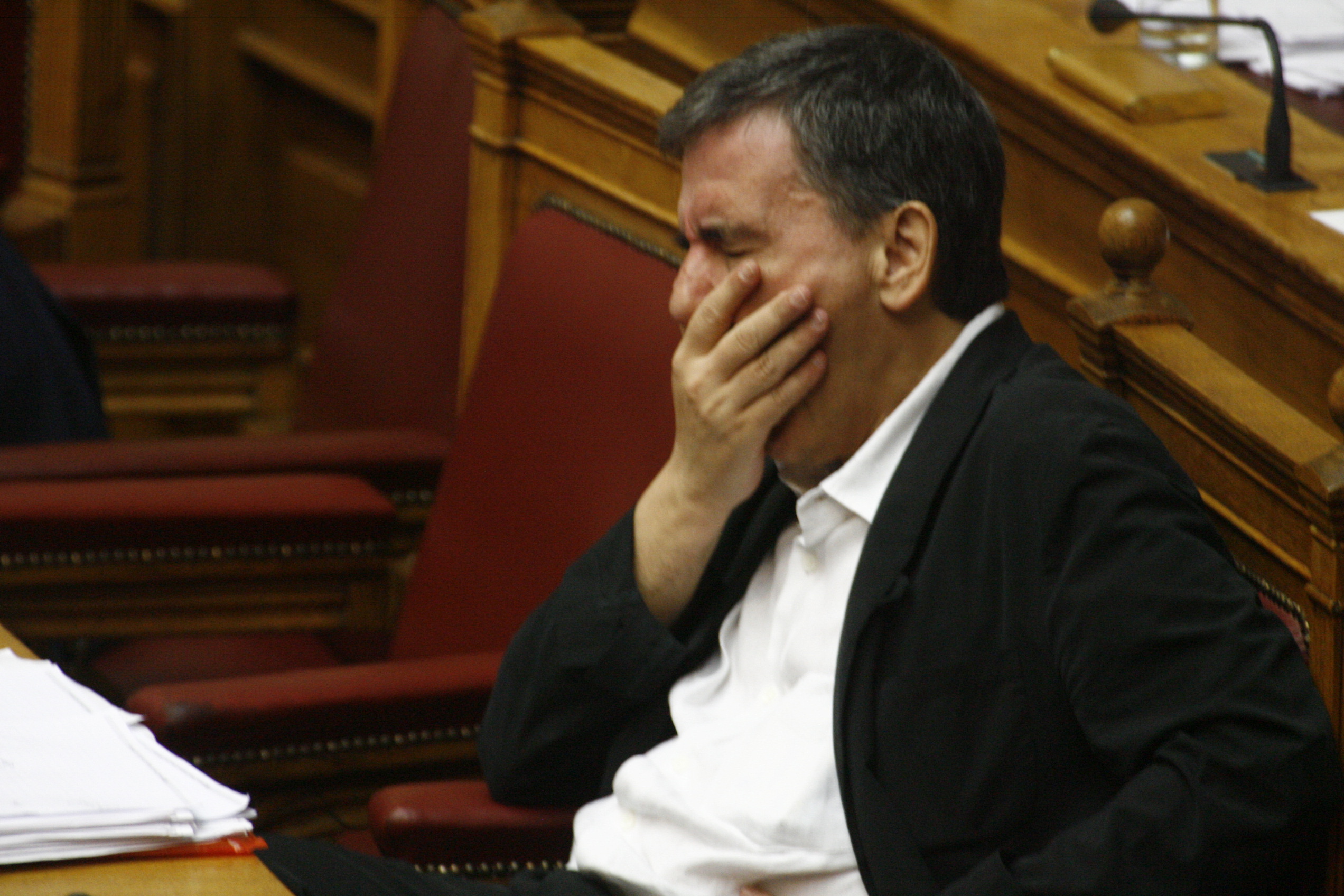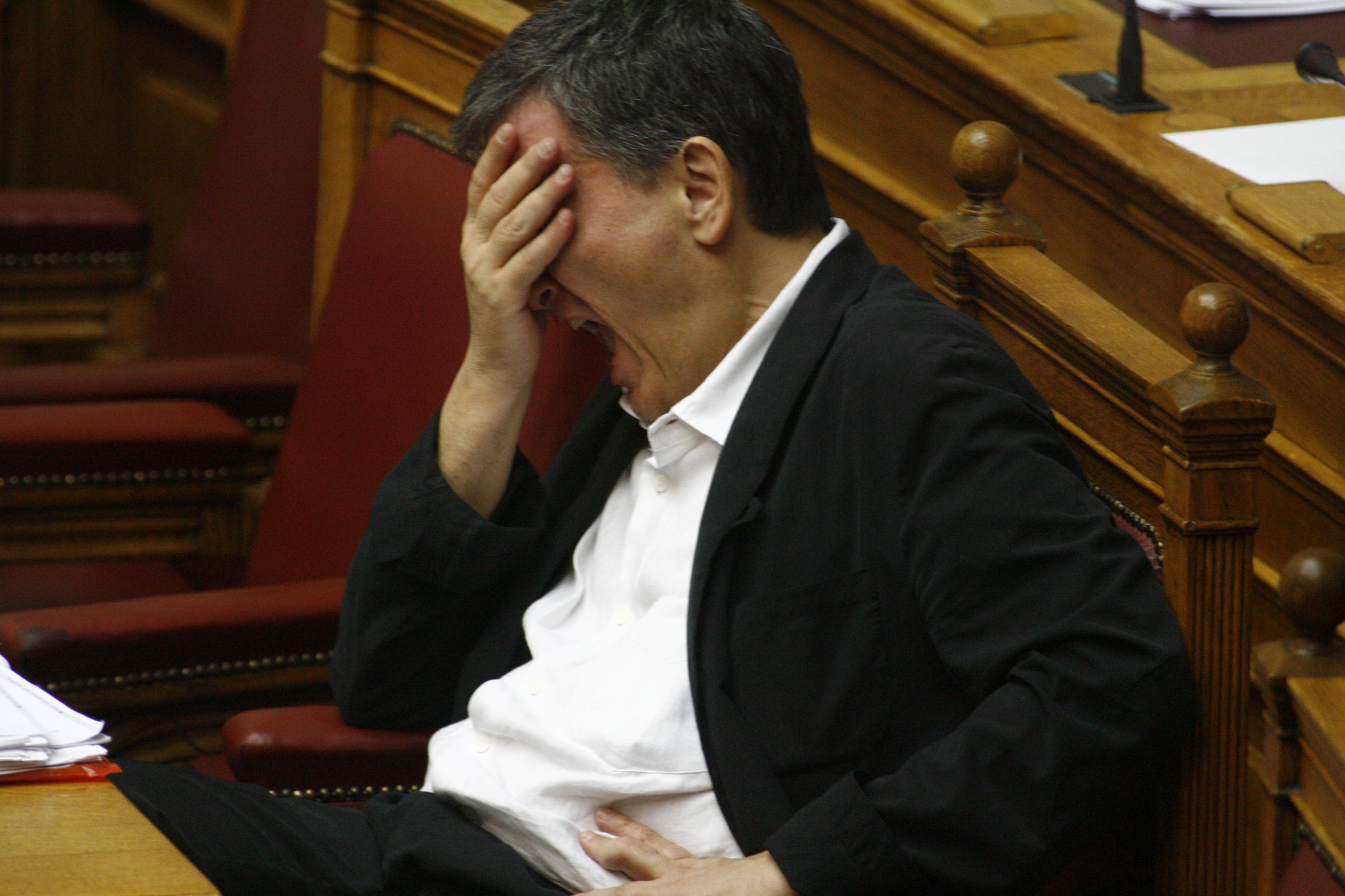 Λίγο το πρωινό ξύπνημα, λίγο τα ξενύχτια με το ατελείωτο «γράψε-σβήσε» των όρων του 3ου Μνημονίου κατά τις προηγούμενες ημέρες, ο υπουργός Οικονομικών, Ευκλείδης Τσακαλώτος, εμφανίστηκε ιδιαιτέρως κουρασμένος ενώπιον της ολομέλειας της Βουλής.