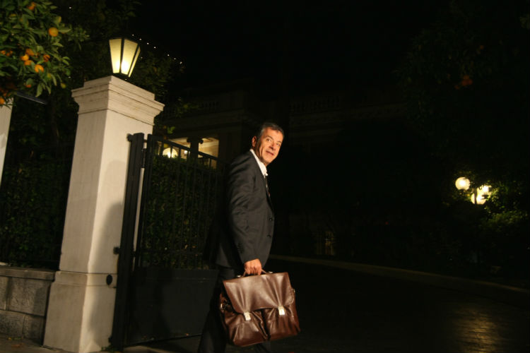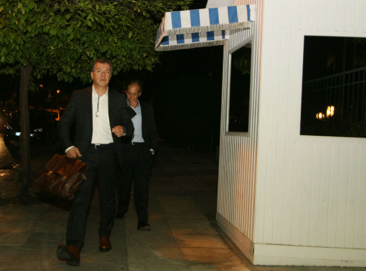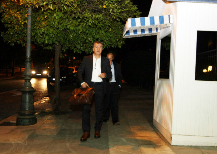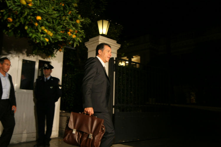 Όπως αποδεικνύουν τα φωτογραφικά στιγμιότυπα, ο επικεφαλής του «Ποταμιού», χαμογελαστός και επικοινωνιακός, πέρασε, το απόγευμα της Τετάρτης, το κατώφλι του Μεγάρου Μαξίμου φορώντας κοστούμι, ενώ στα χέρια του κρατούσε έναν δερμάτινο χαρτοφύλακα.