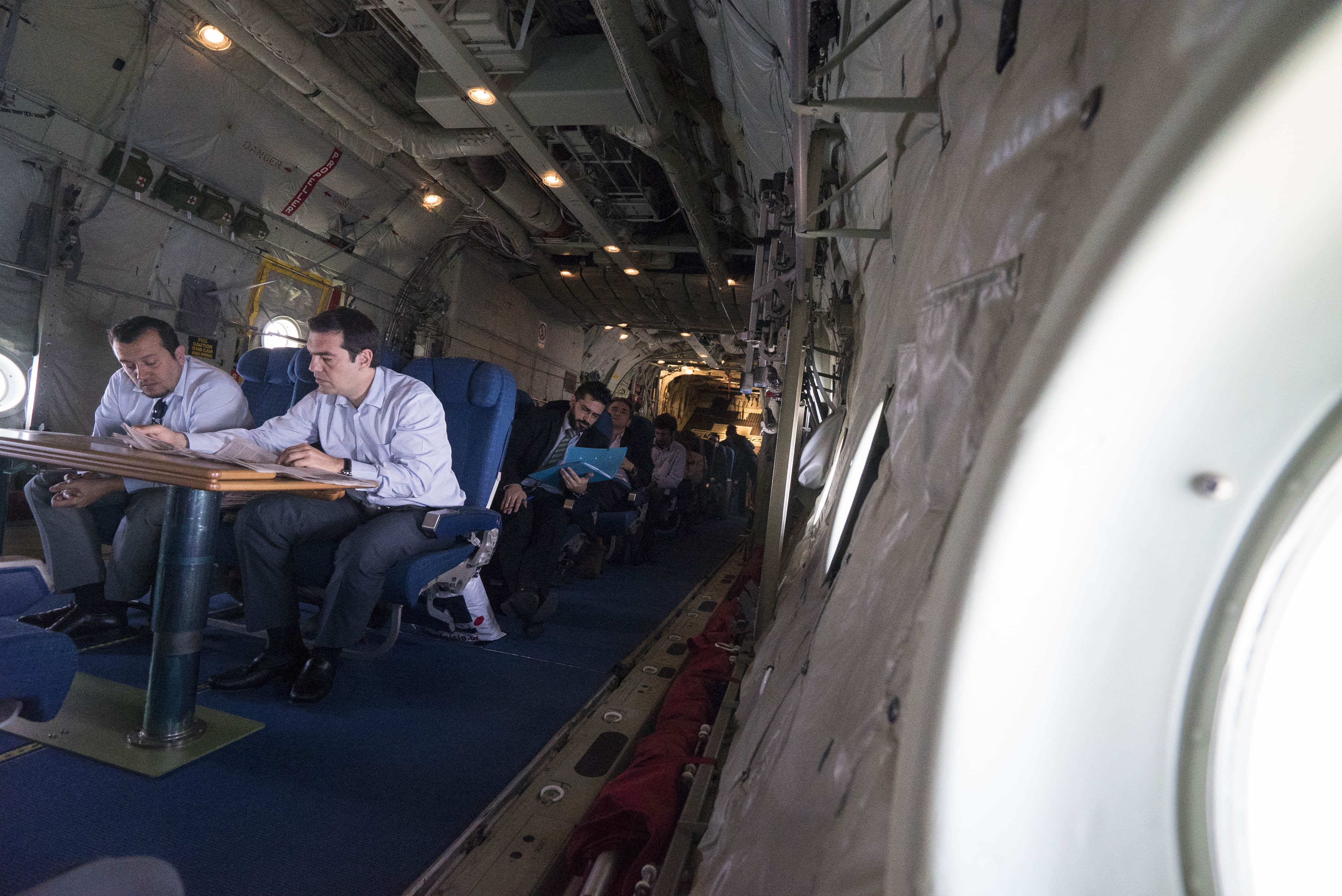 Ο Αλέξης Τσίπρας στερήθηκε τις ανέσεις των πρωθυπουργικών αεροσκαφών και ταξίδεψε από τη στρατιωτική βάση της Ελευσίνας με C-130 της Πολεμικής Αεροπορίας.