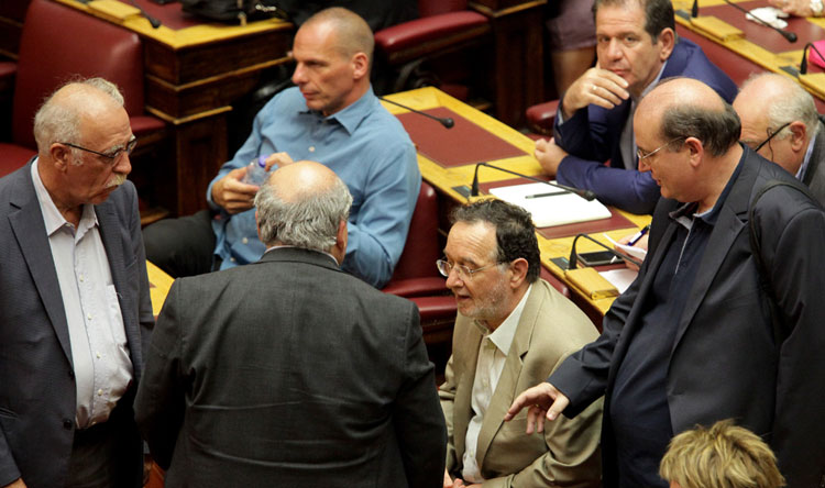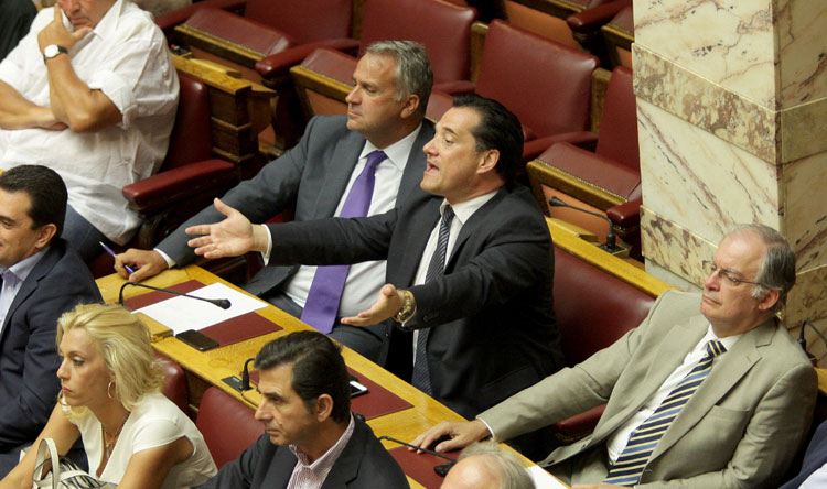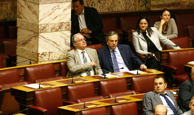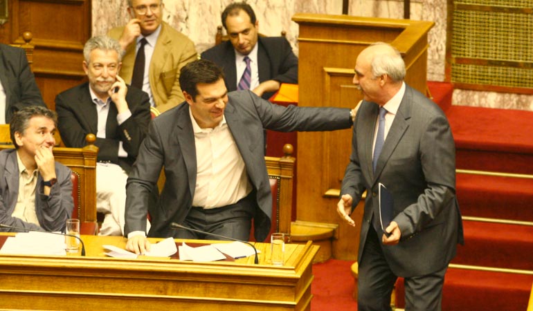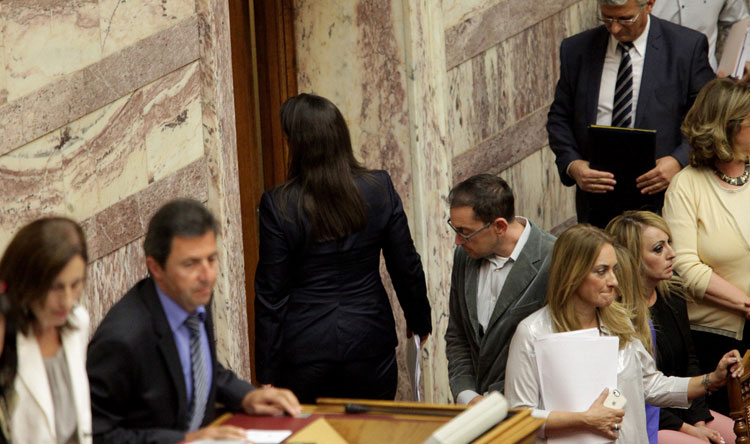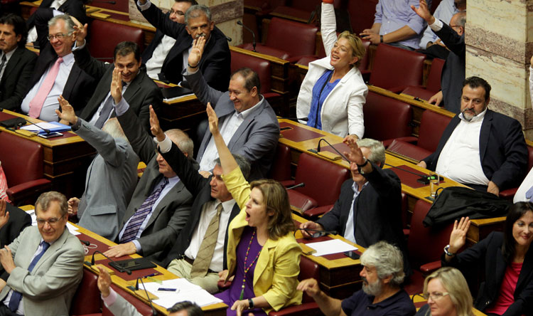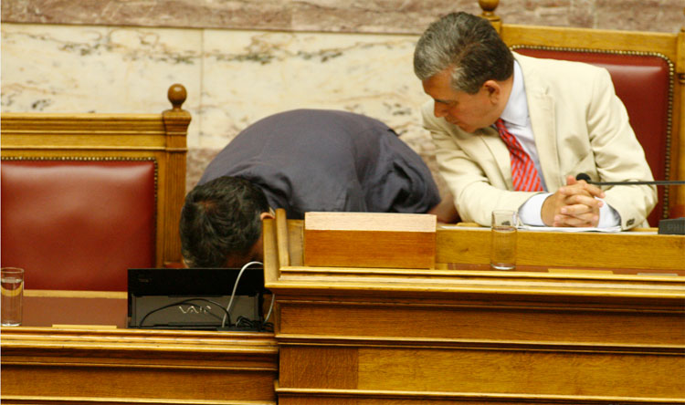 Λίγες ώρες προτού κυβέρνηση και κόμματα της αντιπολίτευσης επρόκειτο να λάβουν σκληρές αποφάσεις για το μέλλον της Ελλάδας, με ψηφοφορία επί του πολυνομοσχεδίου για τα προαπαιτούμενα, ο εκνευρισμός ήταν έκδηλος και πολλές φορές χρειάστηκε η παρέμβαση του προεδρεύοντος της Βουλής, κ. Μητρόπουλου για να ηρεμήσουν τα πνεύματα.