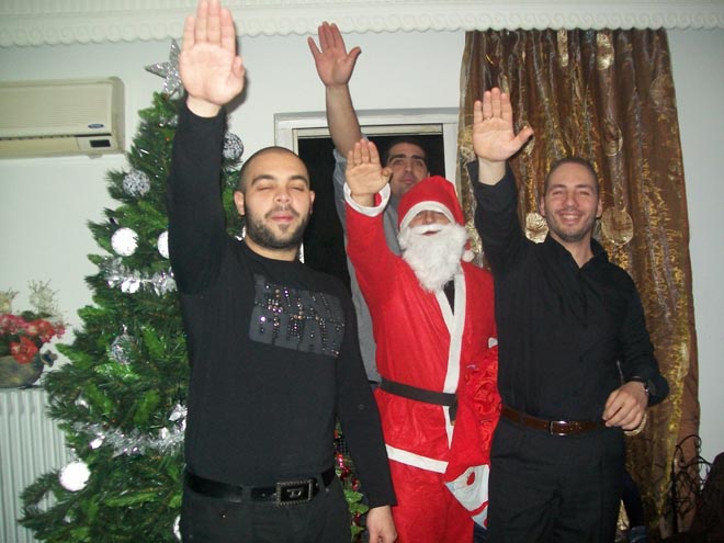 Ο Αϊ-Βασίλης της Χρυσής Αυγής χαιρετάει ναζιστικά στην χριστουγεννιάτικη φωτογραφία παρασέρνοντας όμως όχι μόνο τους συντρόφους του στο κόμμα αλλά κι έναν οδηγό του αντιπροέδρου της Βουλής. Αυτό ισχυρίστηκε ο εκπρόσωπος Τύπου της Χρυσής Αυγής Ηλίας Κασιδιάρης,ο οποίος «μαρτύρησε» ότι στο συγκεκριμένο ενσταντανέ ο τελευταίος είναι ο Στυλιανός Γιαλελής ,οδηγός του Γιάννη Τραγάκη.