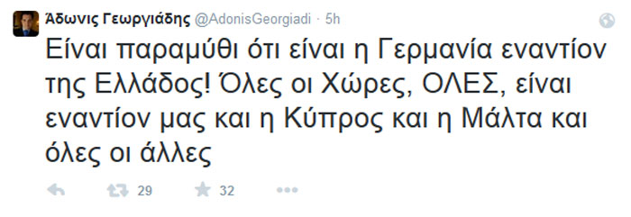 Έμμεσα πυρά κατά της κυβέρνησης και της τακτικής που ακολουθεί στις διαπραγματεύσεις εξαπολύει ο Άδωνις Γεωργιάδης μέσα από τον προσωπικό του λογαριασμό στο twitter.