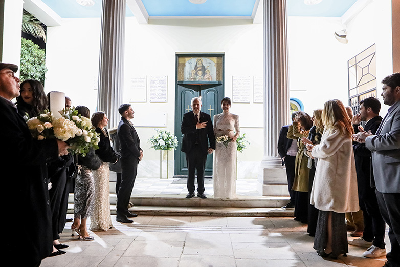 Κουμπάροι του ζευγαριού ήταν οι φίλοι τους, Γιώργος Μακρόπουλος και η σύζυγός του Άννα, ενώ το μυστήριο πραγματοποιήθηκε μακριά από τα φώτα της δημοσιότητας.